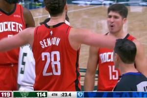 有点危险!杰林威飞扑JJJ三分被吹犯规 裁判回看补吹一级恶意