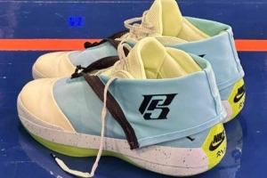 本场比赛班凯罗还上脚了一款特殊版本的个人PE球鞋,这双Air Jordan40 Hybrid“4028”PE,融合了最新款的AJ40和之前的鞋款AJ 28,将两者相结合推出的一款特殊鞋款。