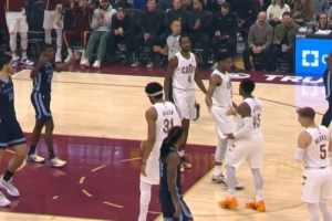 残暴大帽!西亚卡姆反击上篮&巴恩斯钉板直接扇回罚球线