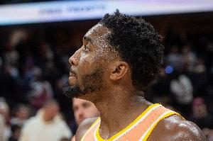 骑士主将米切尔本场比赛在前三节都表现不佳,合计只有7投1中,虽然他最后一届爆发单节轰下19分,但也未能帮助球队扭转败局。