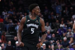 第三节比赛,爱德华兹开始发力,进攻端里突外投非常高效,带队反超比分,他单节9中7(三分4中3),罚球2中2砍下19分3篮板1抢断1盖帽。三节过后,爱德华兹砍下35分5篮板2助攻3抢断1盖帽。
