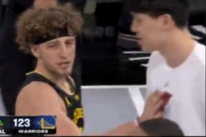 GIF-完赛后波杰姆斯基和杨瀚森握手拍胸致意~!