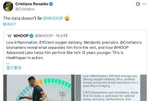 今年5月时,C罗对话健康监测设备whoop创始人,当时设备显示C罗的身体年龄为28.9岁。