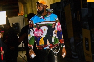 湖人官推晒球员入场照:詹姆斯花哨着装十分吸引眼球