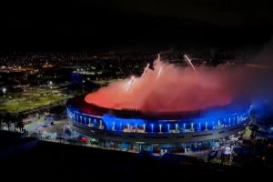 次回合,竞技队的主场氛围让全世界为之赞叹。尽管本场比赛最终比分是0-0,但是总统庇隆球场超燃的画面,硝烟弥漫堪比战争,能见度不足5m,极其震撼。